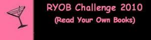 The first challenge I decided to try for this year was the RYOB Challenge, or Read Your Own Books. As I wrote in this post, at the start of the year, I had 413 books tagged “tbr” (to be read) in my LibraryThing catalog. I set a goal to read 30 of those books during 2010. Since we’re one-third of the way through the year, hopefully I’ve read about ten of them. Looking again at my LT catalog, the number of books I’ve tagged as “RYOB 2010” is…eleven! The good news is that I’m on track to meet my goal of 30 books. The bad news is, the number of books tagged “tbr” as of today has increased to 423. It’s so hard to resist sales and bargains! See: Mailbox Monday for April 19, for example. Boo hiss boo hiss!